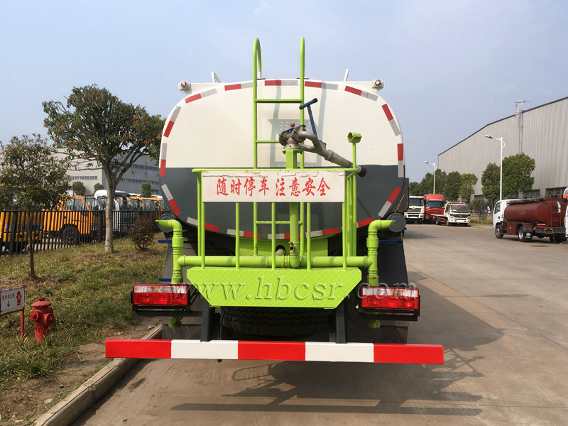 后噴灑:裝有兩只可噴淋后灑裝置,主要對(duì)路面進(jìn)行保潔和壓塵,呈扇形噴灑時(shí)灑水寬度可達(dá)10m以上。